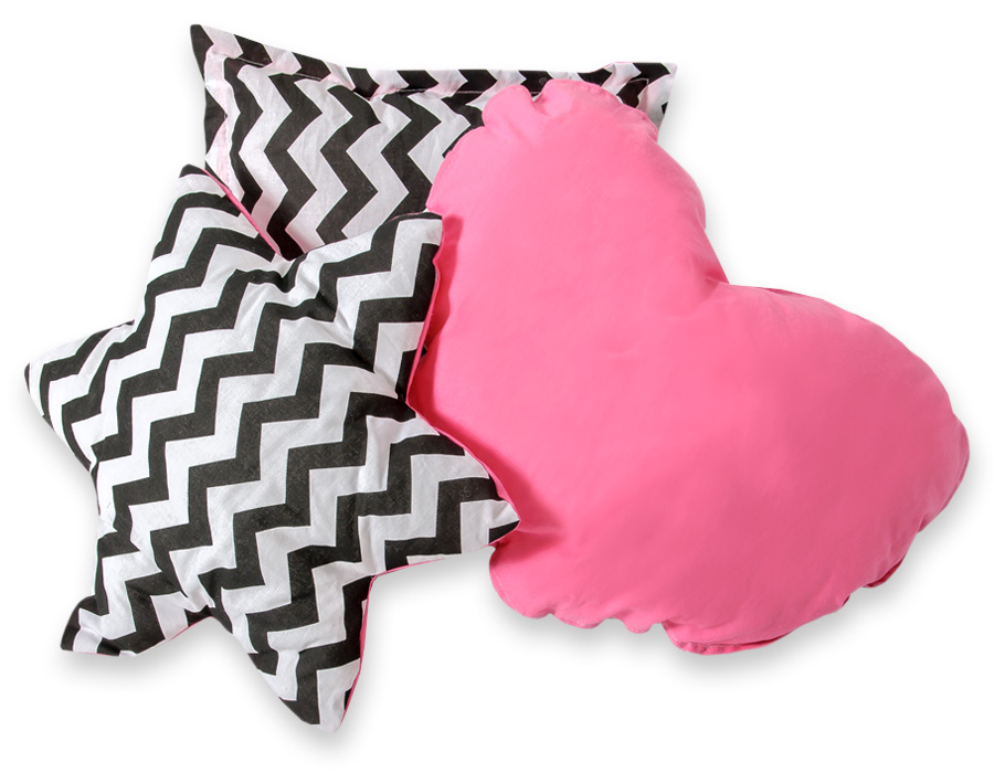 Soft, fluffy pillows, matching the tent color. Each pillow in a different original, decorative form. Cushions are bicoloured - each side made of a different material. Also perfect as a colorful decoration for kids room.
