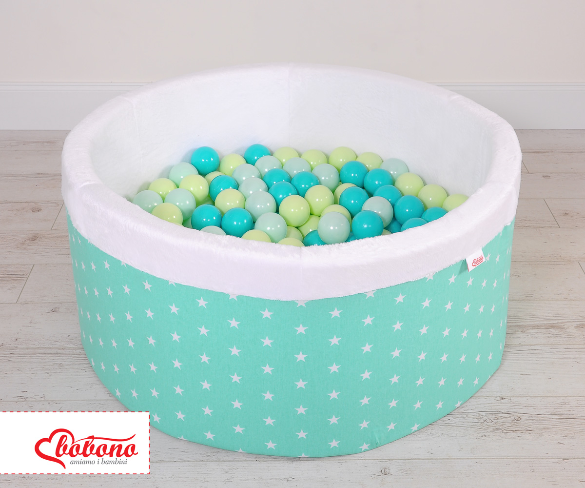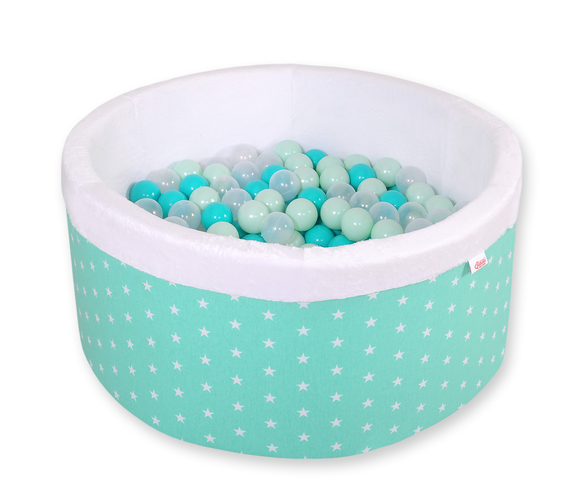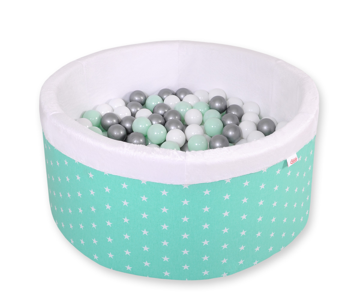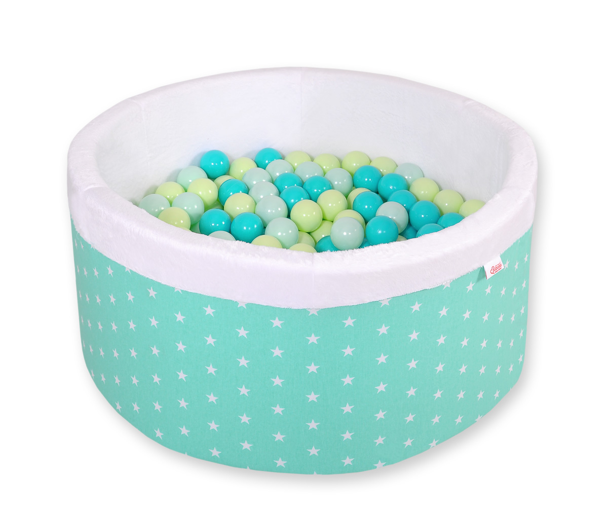 Baby Ball-pit Dry Pool minky with balls 200pcs - mint Stars Ball pit with colorful balls. It is suitable for playing both at home and in the open air. It is ideal not only for fun but it provides comfort, stimulation and helps develop hand eye coordination and it is positive for the child's development.