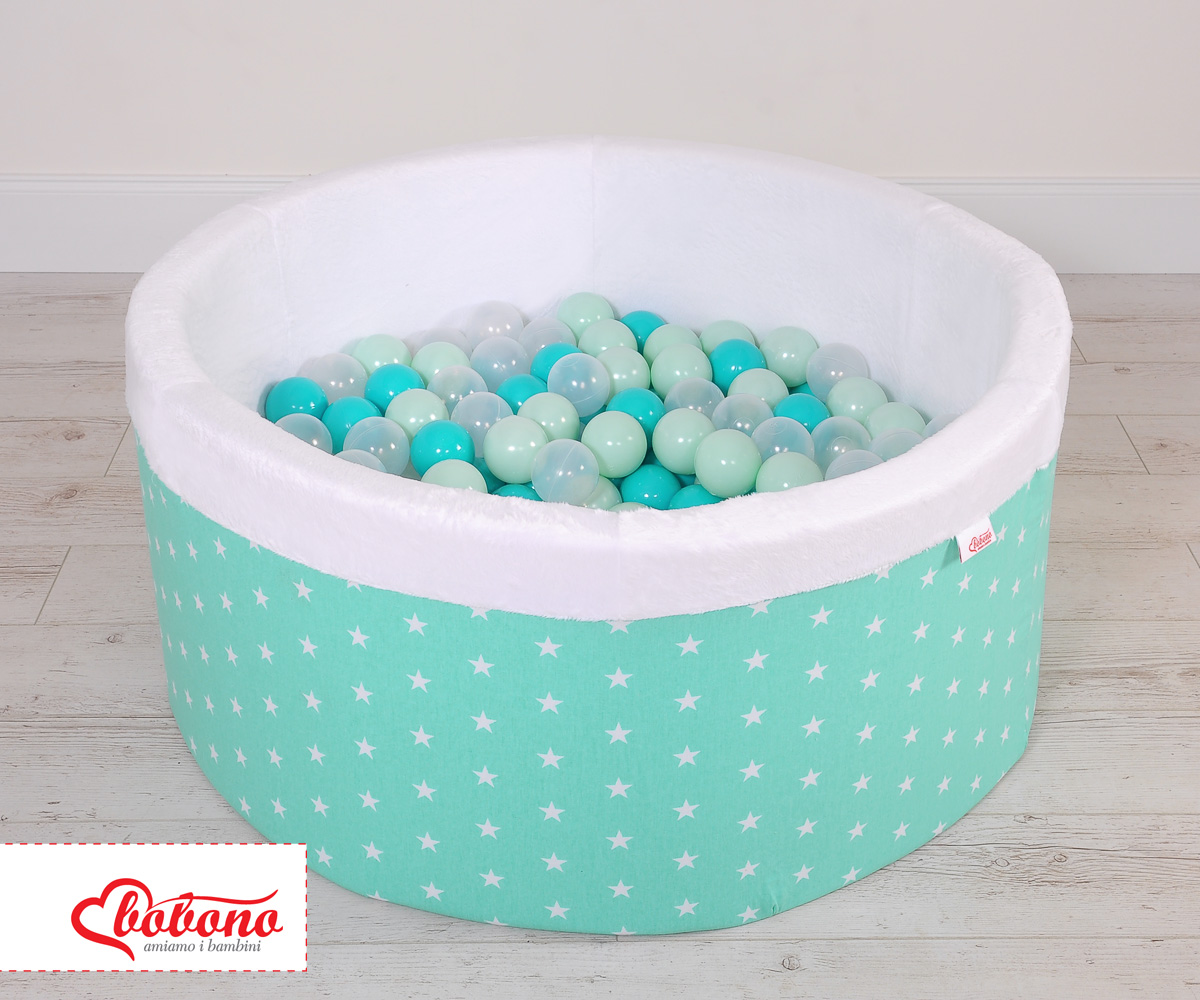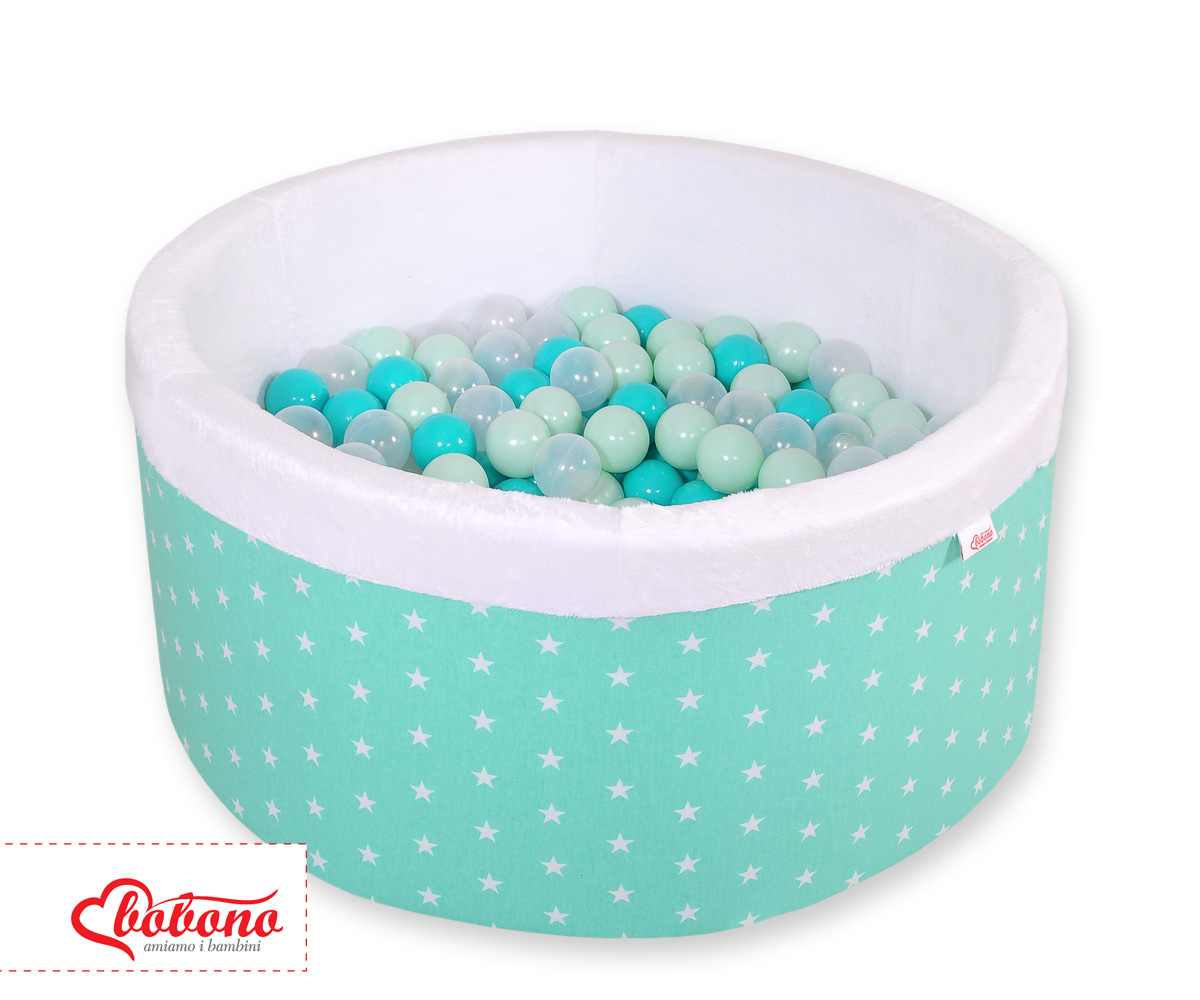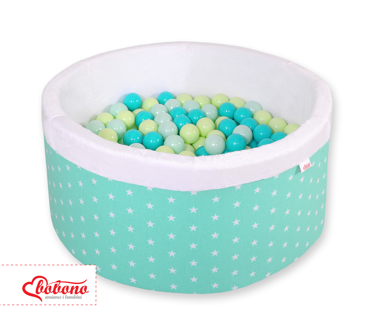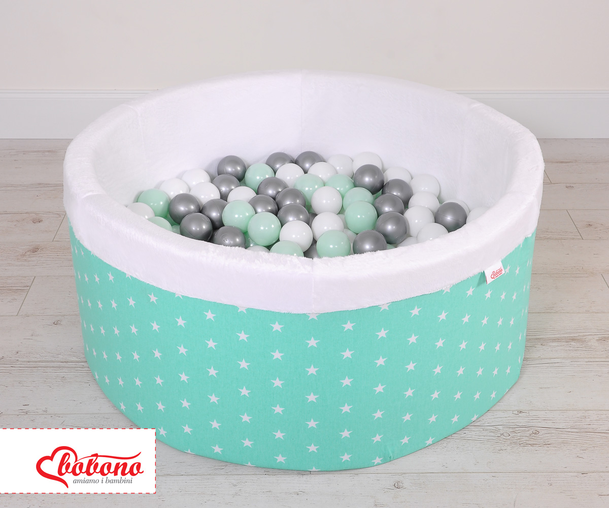Baby Ball-pit Dry Pool minky with balls 200pcs - mint Stars Ball pit with colorful balls. It is suitable for playing both at home and in the open air. It is ideal not only for fun but it provides comfort, stimulation and helps develop hand eye coordination and it is positive for the child's development.