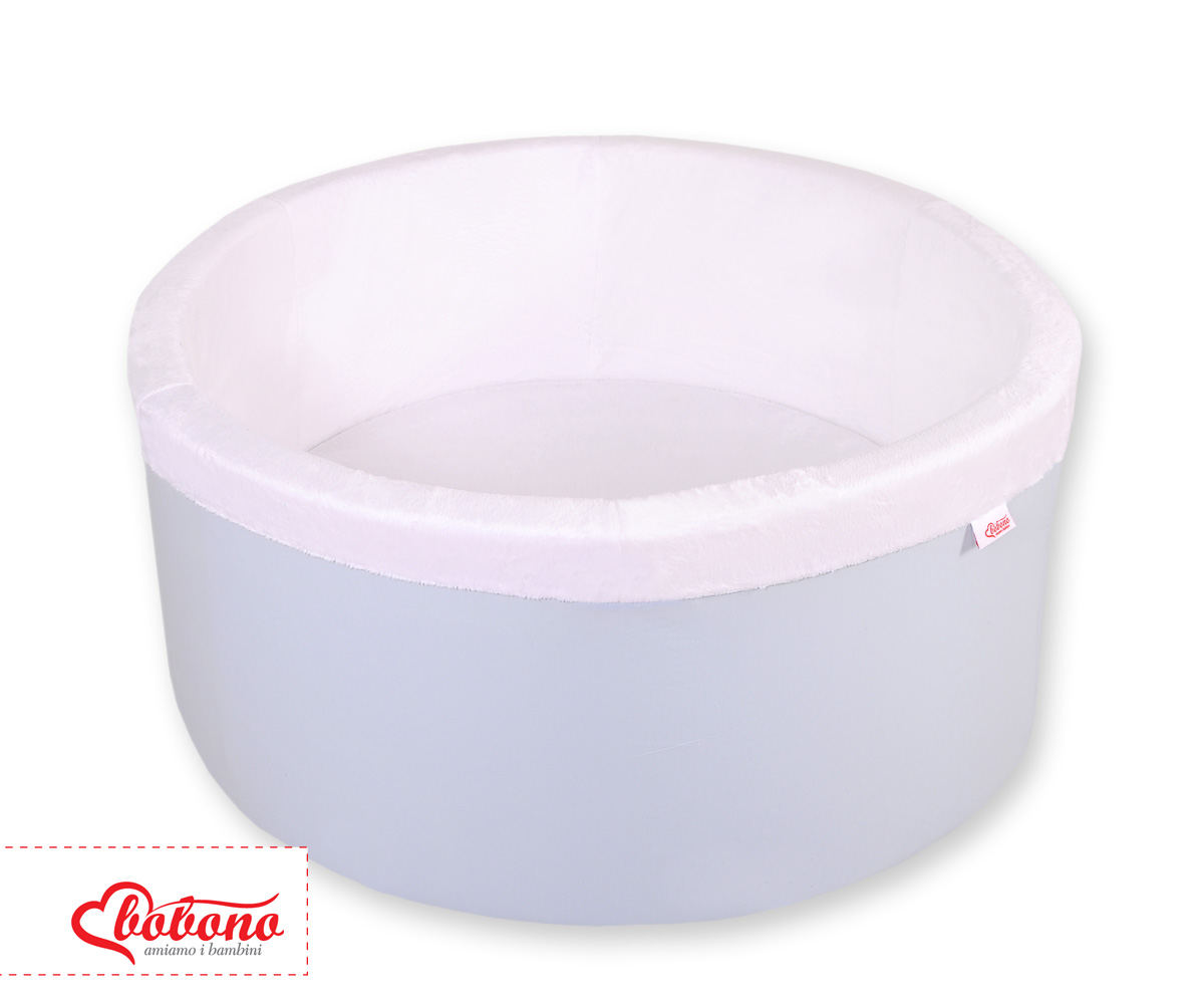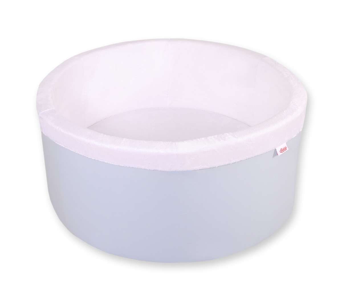 The pool is round with a diameter of 90cm. Side height - 40cm. Made of soft foam. Removable, zippered cover made of 100% cotton and soft minky fleece.