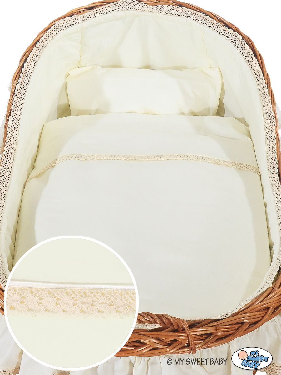 Cream Carina- Crib Hood Wicker Wheels With Bassinet Baby