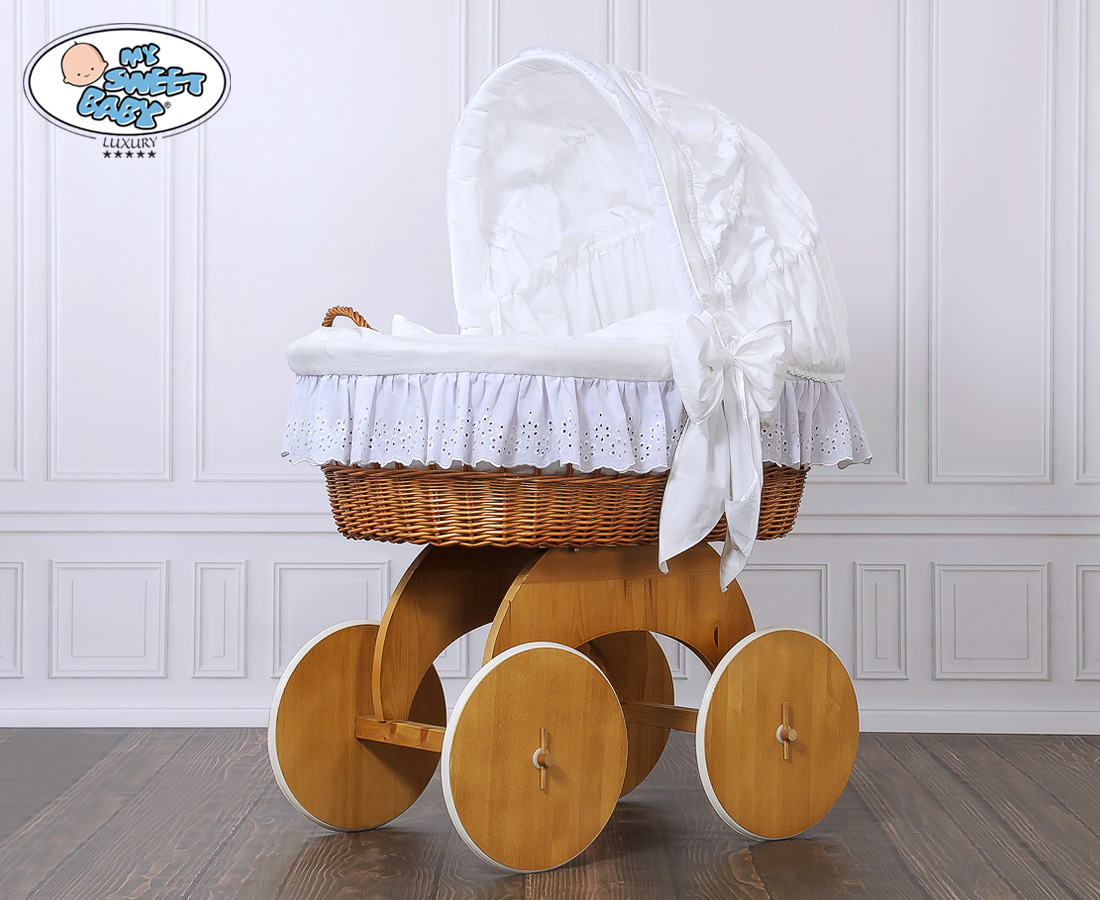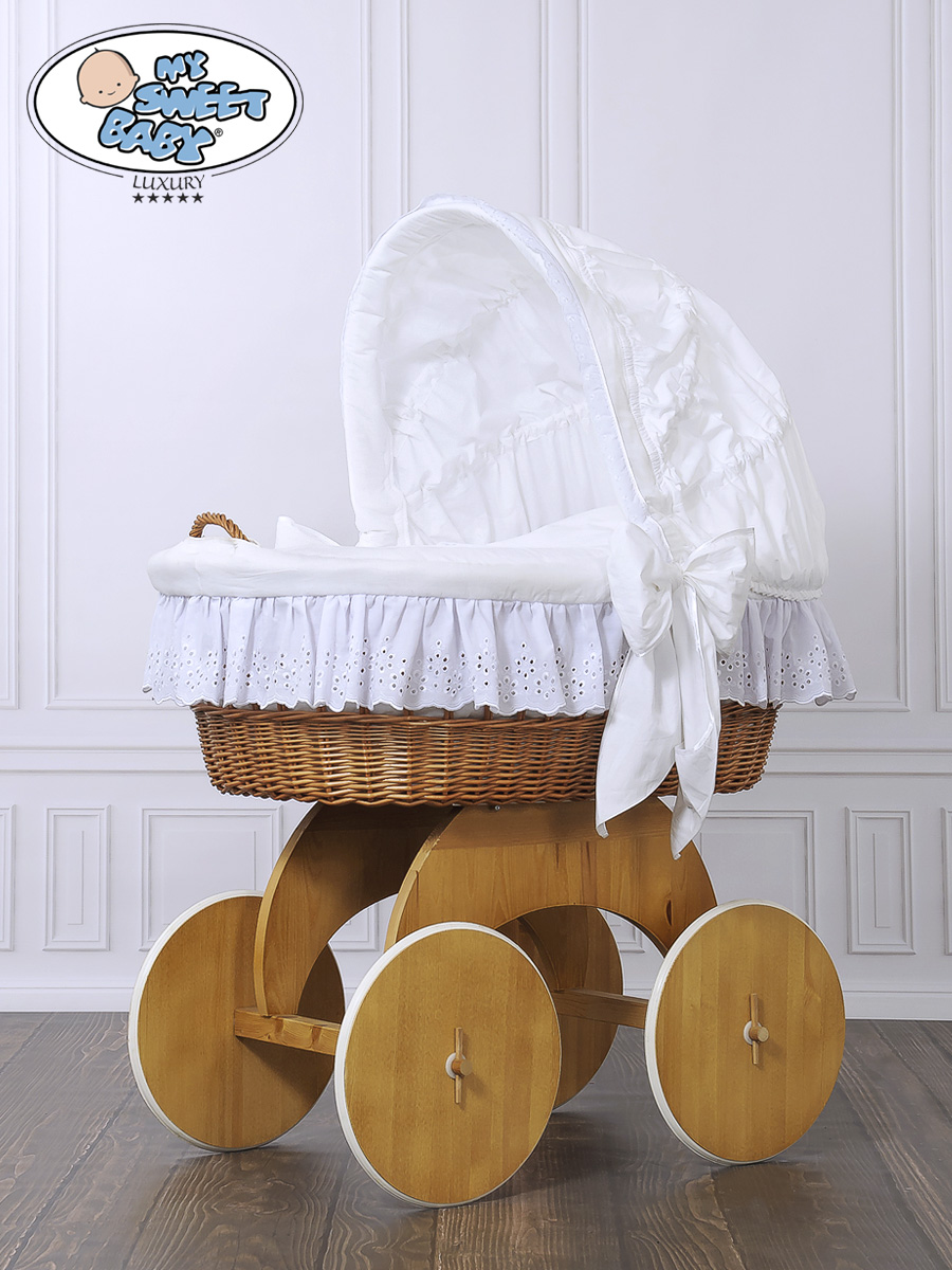 Baby bassinet with wheels Wicker hood crib Sophia no. 50102-912