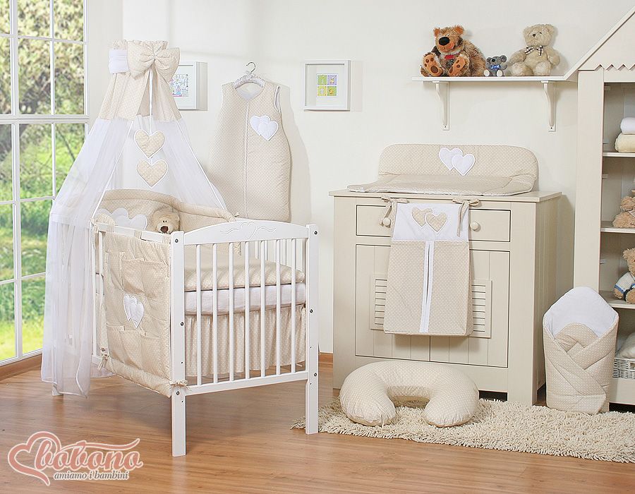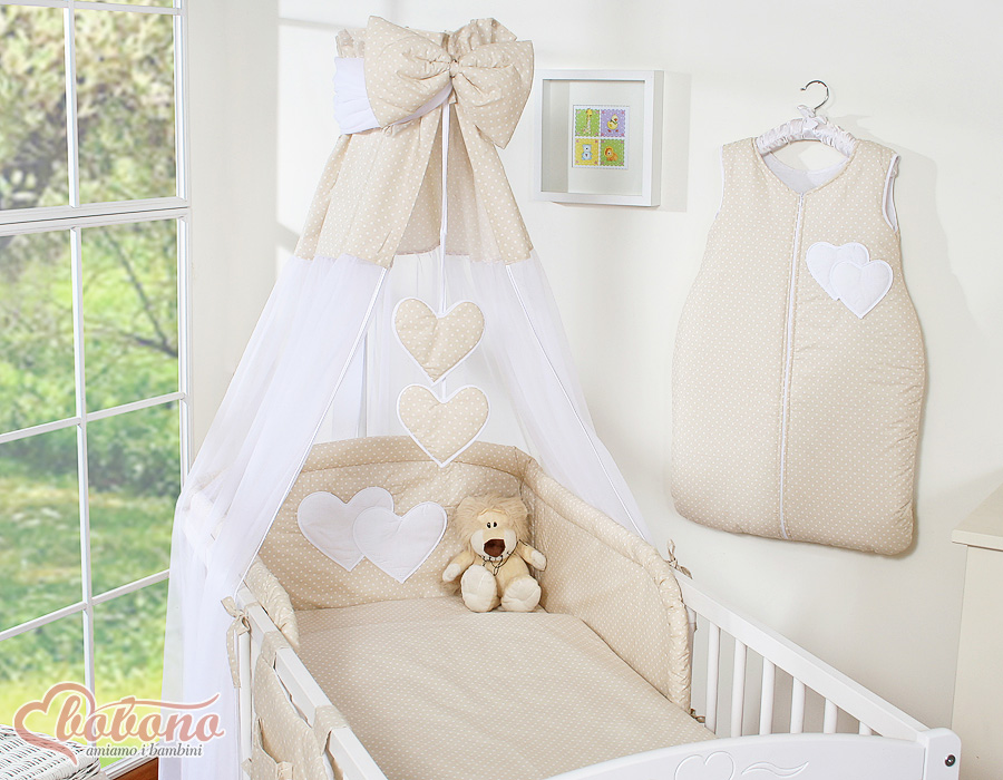 Baby Bed Canopy made of Chiffon- Hanging Hearts white polka dots on beige Beautiful canopy of chiffon. Protection against direct light and drafts. Highest quality and solid workmanship.