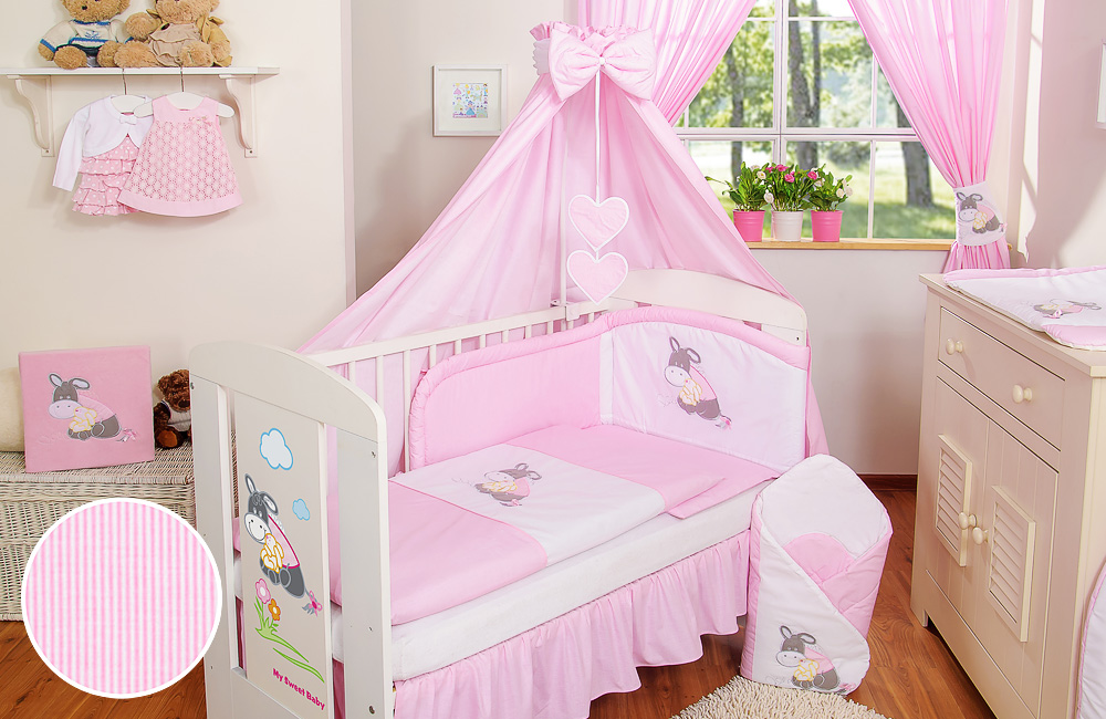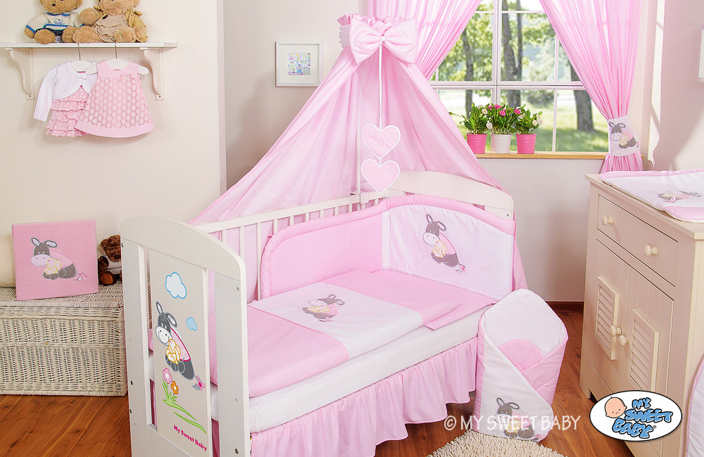 - Canopy made of fabric 160x250cm (100% cotton)- big canopy allows you to make lovely drapes around the cot or cot bed. - Bow+ decorative hanging Applications (other fabric 100% cotton, filling 100%polyester). Pink Luca Donkey Cotton- Of Made Canopy Bed Baby