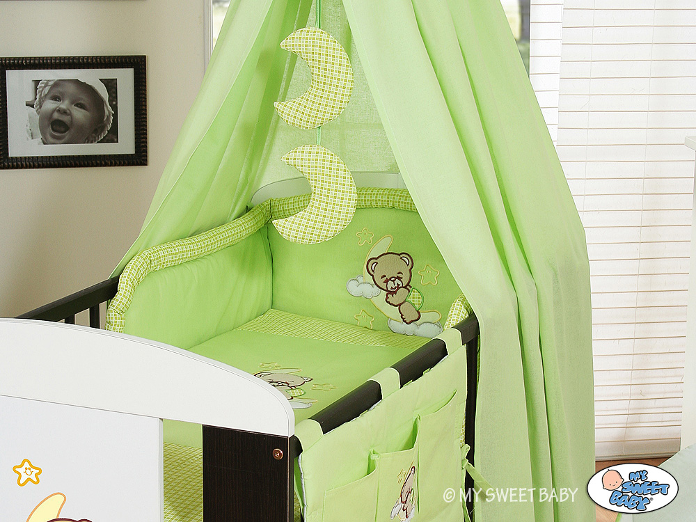 - Canopy made of fabric 160x250cm (100% cotton)- big canopy allows you to make lovely drapes around the cot or cot bed. - Bow+ decorative hanging Applications (other fabric 100% cotton, filling 100%polyester). Green Night Good Cotton- Of Made Canopy Bed Baby