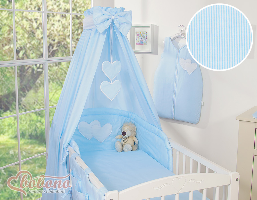 Baby Bed Canopy made of cotton- Hanging Hearts blue stripes Beautiful canopy of fabric. Protection against direct light and drafts. Highest quality and solid workmanship.