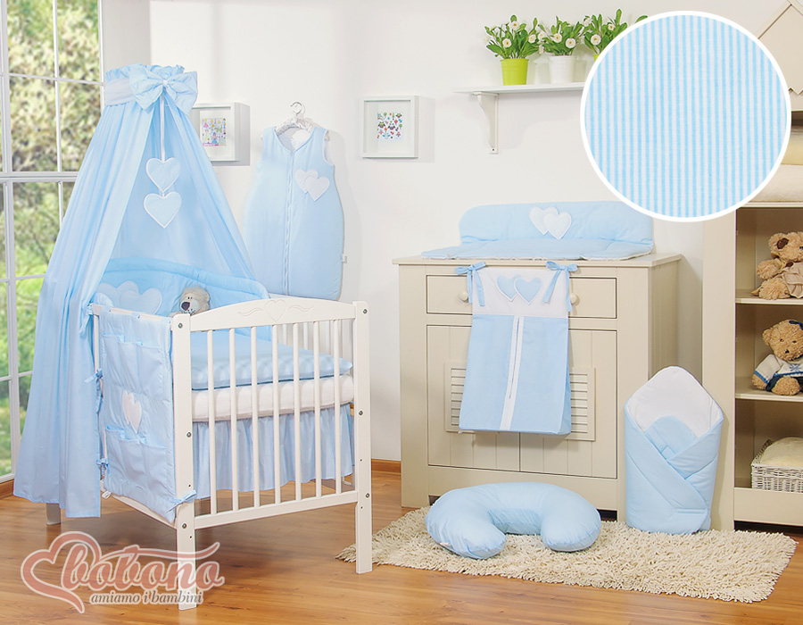 - Canopy made of fabric 160x250cm (100% cotton)- big canopy allows you to make lovely drapes around the cot or cot bed. - Bow+ decorative hanging Applications (other fabric 100% cotton, filling 100%polyester). Stripes Blue Hearts Hanging Cotton- Of Made Canopy Bed Baby