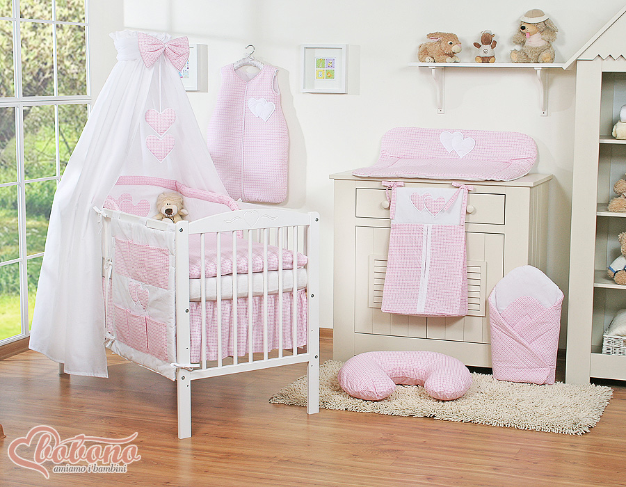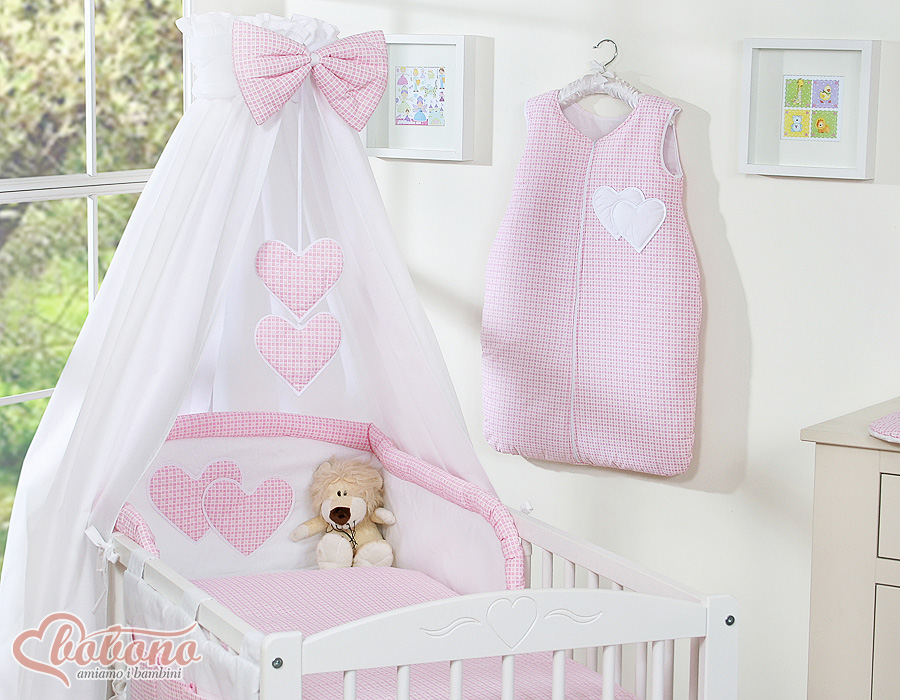 Baby Bed Canopy made of cotton- Hanging Hearts pink checkeredBaby Bed Canopy made of cotton- Hanging Hearts pink checkered