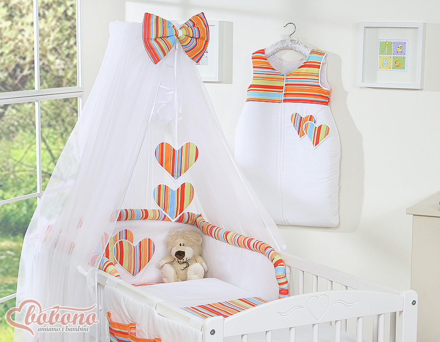 Baby bed Mosquito-net made of chiffon- Hanging Hearts orange stripesBaby bed Mosquito-net made of chiffon- Hanging Hearts orange stripesBaby bed Mosquito-net made of chiffon- Hanging Hearts orange stripesBaby bed Mosquito-net made of chiffon- Hanging Hearts orange stripes