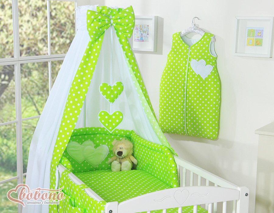 Baby Bedding set 5-pcs- with canopy- Hanging Hearts white dots on greenBaby Bedding set 5-pcs- with canopy- Hanging Hearts white dots on greenBaby Bedding set 5-pcs- with canopy- Hanging Hearts white dots on greenBaby Bedding set 5-pcs- with canopy- Hanging Hearts white dots on green