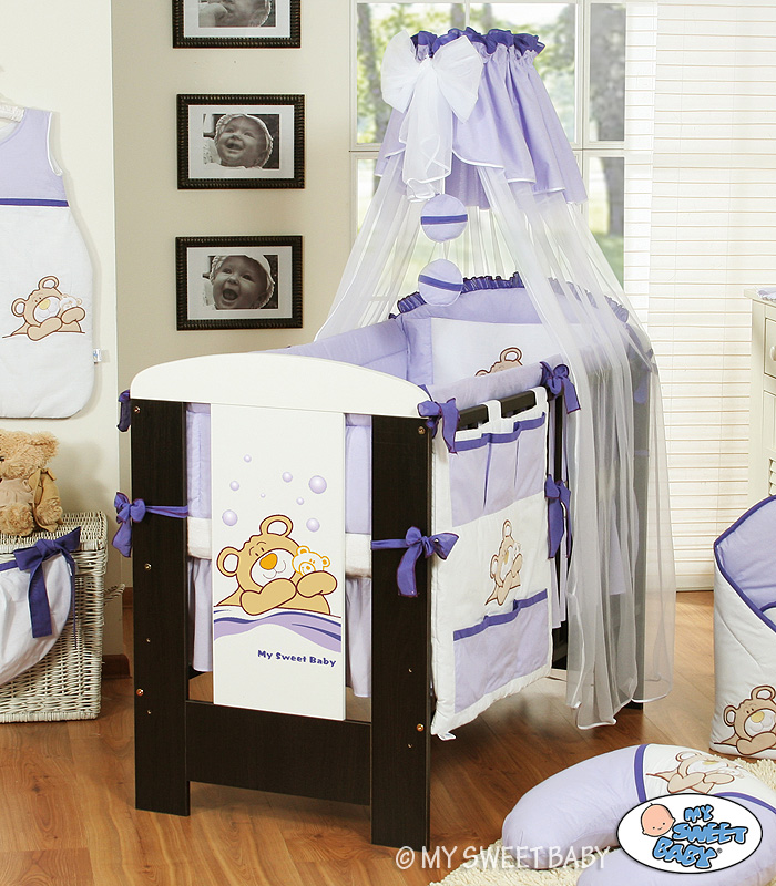 Baby Bedding set 5-pcs- with canopy (L60)- Teddy Bear Barnaba lilacBaby Bedding set 5-pcs- with canopy (L60)- Teddy Bear Barnaba lilac
