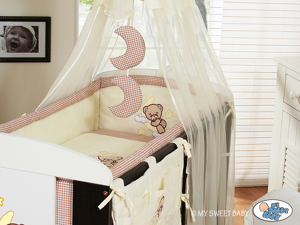 Baby Shop » Bedding sets for cots and beds » Collection GOOD NIGHT » Bedding sets for cot 140cm » Bedding set 5-pcs with canopy (L) » Baby Bedding set 5-pcs- with canopy (L70)- Good night brown