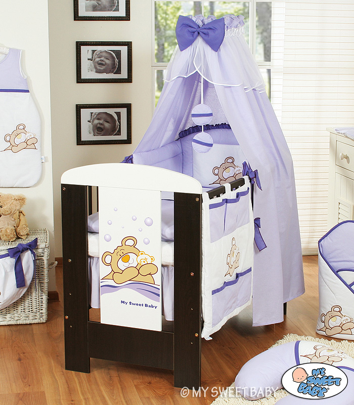 Baby Bedding set 5-pcs- with canopy (S60)- Teddy Bear Barnaba lilacBaby Bedding set 5-pcs- with canopy (S60)- Teddy Bear Barnaba lilac