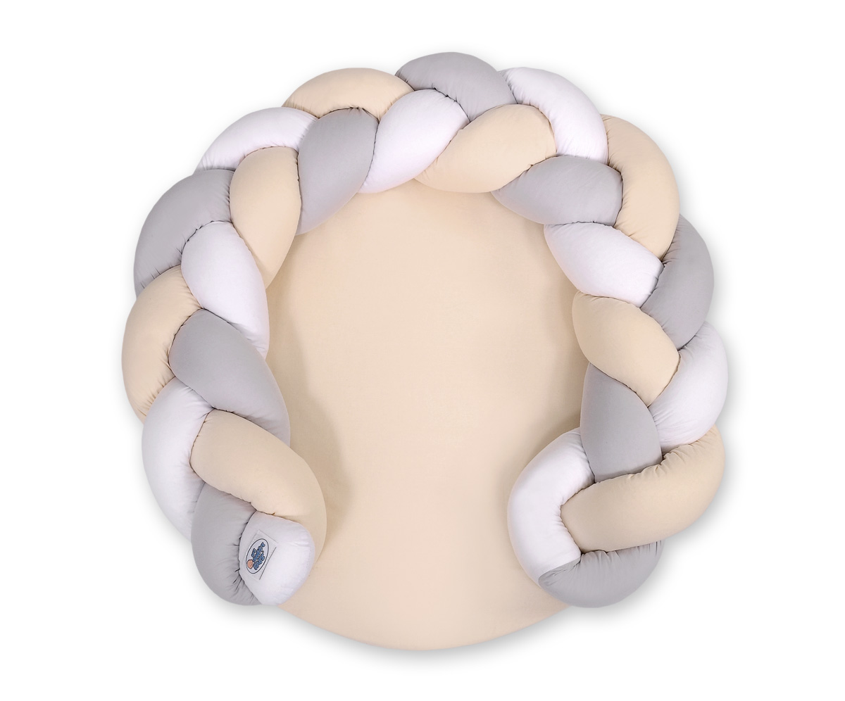 Baby Shop » Braided Baby Nests & Bumpers » Baby Braided Donut Play Mat » Baby braided knot donut pillow/ play mat 2 in 1 - white-beige-gray