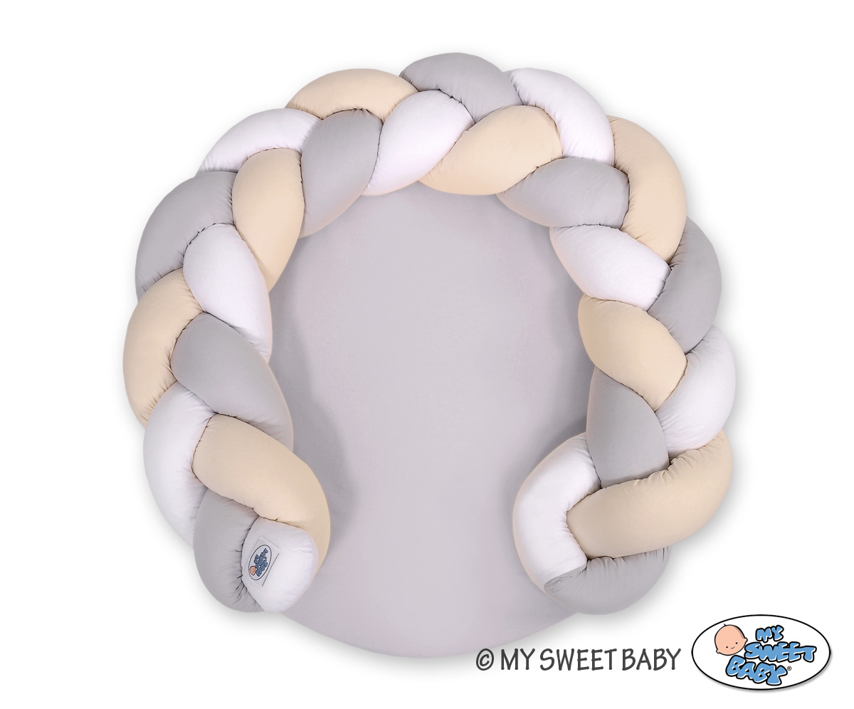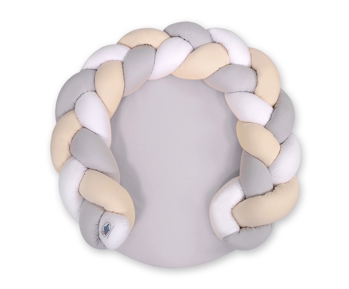 Baby Shop » Braided Baby Nests & Bumpers » Baby Braided Donut Play Mat » Baby braided knot donut pillow/ play mat 2 in 1 - white-beige-gray