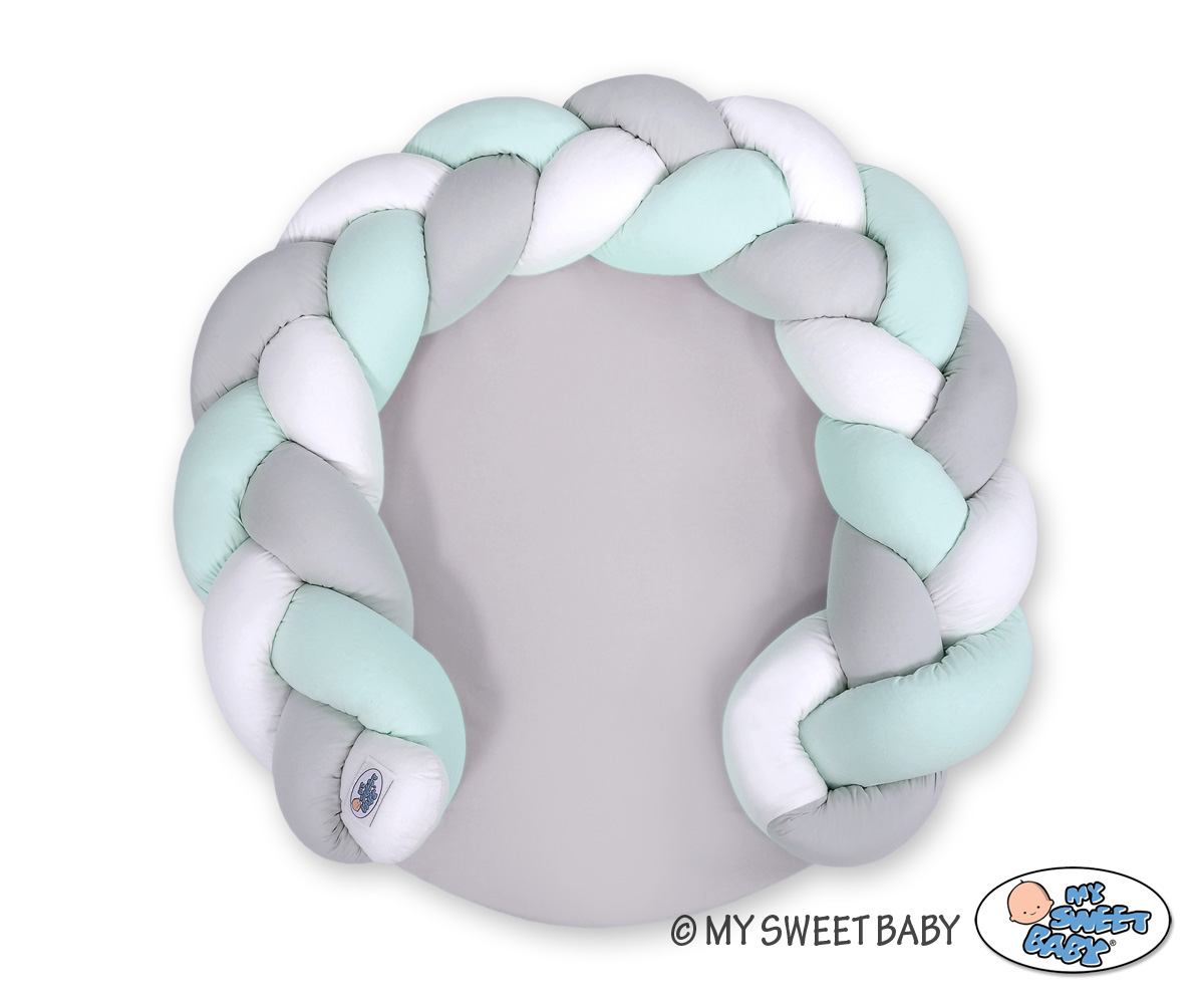 After disconnecting the braid from the mattress it turns into a braided bumper for a baby cot (with a length of up to 180cm) Braided bumper works great in any baby bed, as well as in "adult" bed. It is also an original decorative element of a children's room.