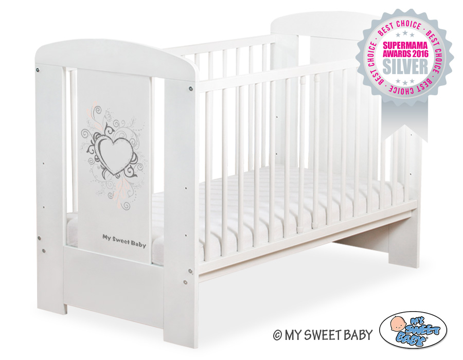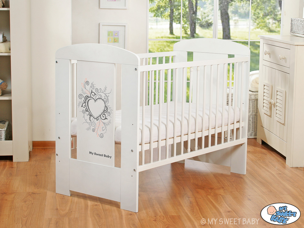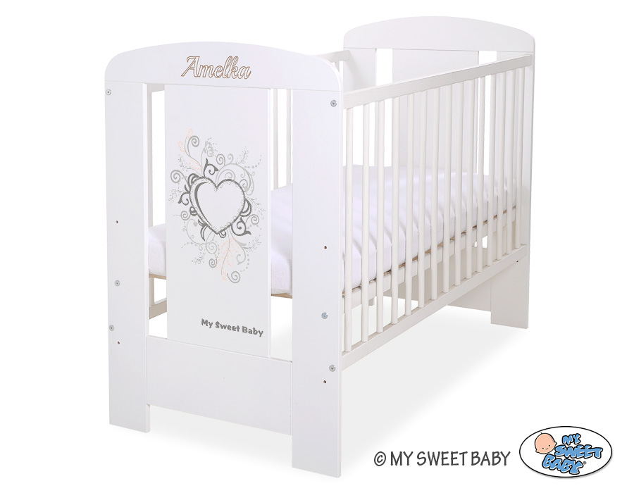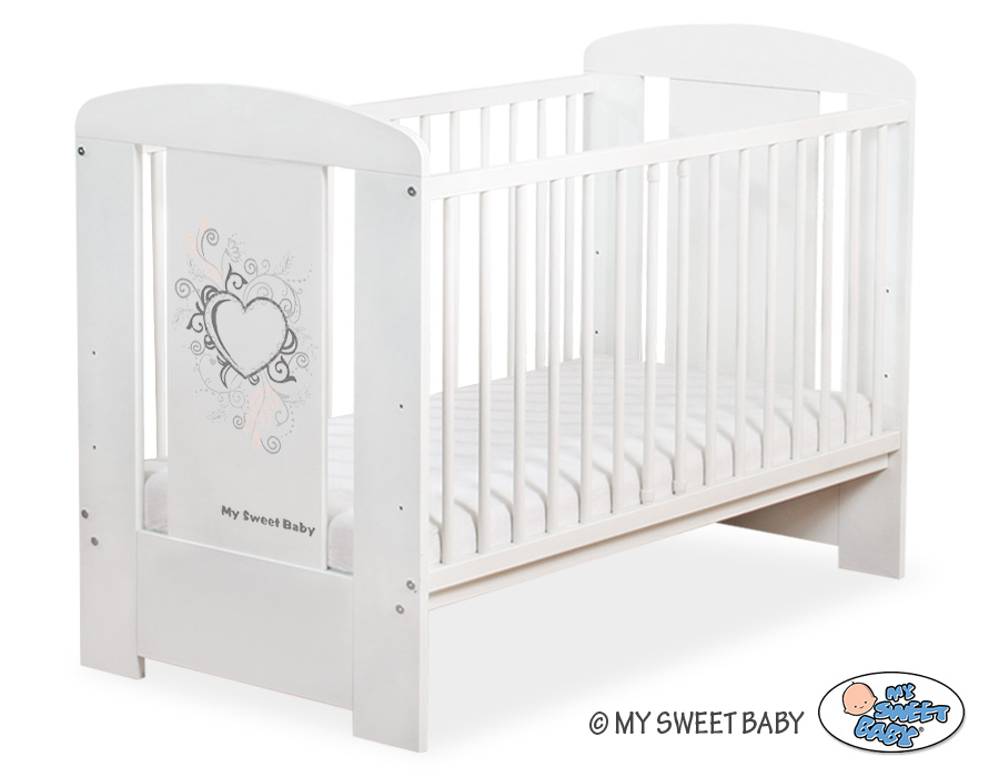 - stable and safe cot for your baby, it is also a beautifull room decoration, it looks beautifull with bedding set from Chic collection. - front and back are made of melamine faced chipboard. On the front of cot the graphic that fits to the bedding Chic.