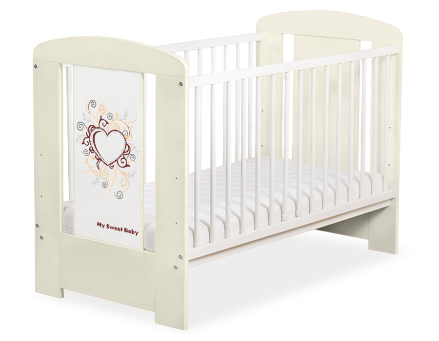 - stable and safe cot for your baby, it is also a beautifull room decoration, it looks beautifull with bedding set from Chic collection. - front and back are made of melamine faced chipboard. On the front of cot the graphic that fits to the bedding Chic.