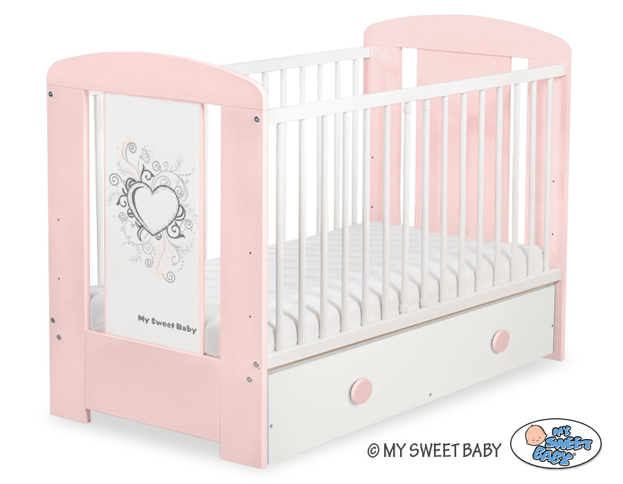 Wooden baby cot Chic 120x60cm with drawer MAXI