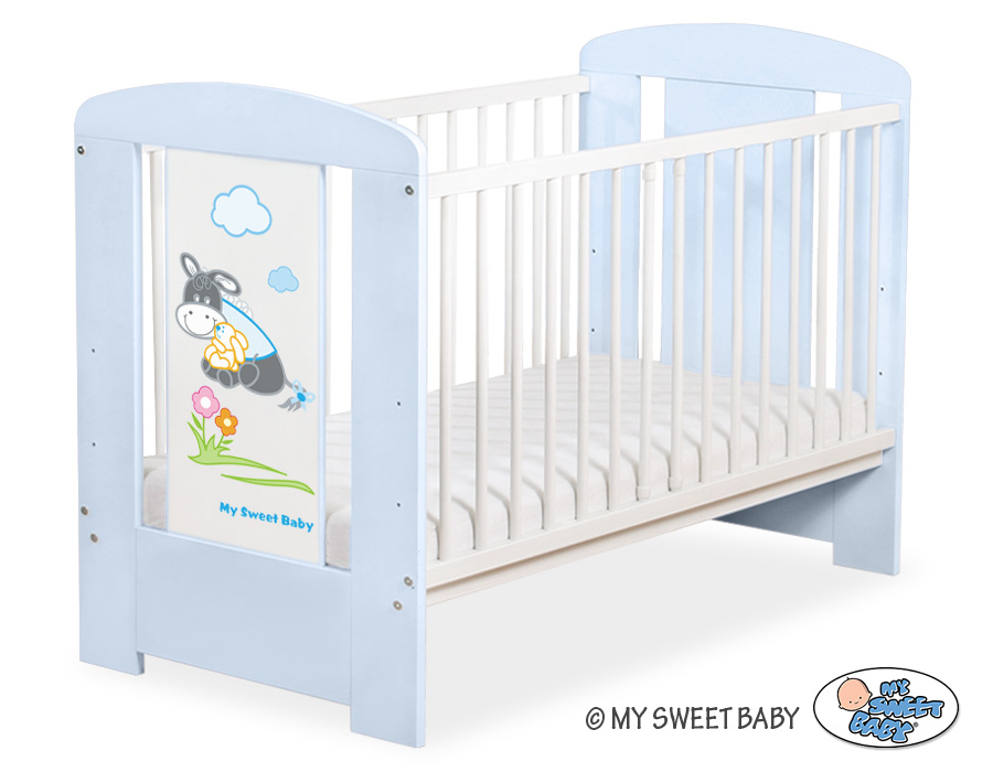 - stable and safe cot for your baby, it is also a beautifull room decoration, it looks beautifull with bedding set from Donkey Luca collection. - front and back is made of fibreboard mdf. On the front of cot the graphic that fits to the bedding Donkey Luca.