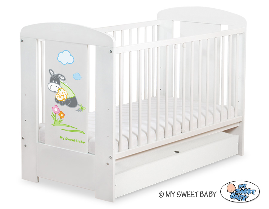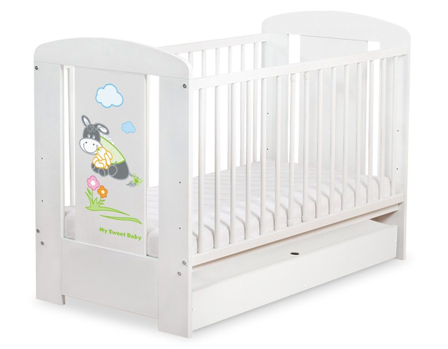 Baby cot bed 120x60cm Donkey Luca with drawer STANDARD Wooden baby cot 120x60cm with drawer STANDARD