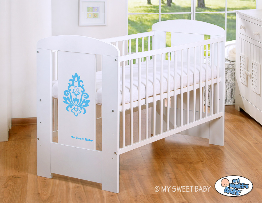 * Three height levels of mattress frame (base) - the top level for easy care of baby, the middle level for babies for easy caring, scrolling and safety for baby. The lowest level when the child already starts walking. When you remove the removable bars- your child will have the possibility to get out of the cot.