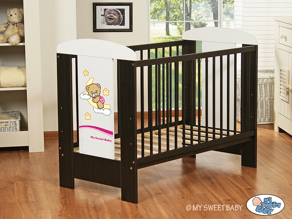- stable and safe cot for your baby, it is also a beautifull room decoration, it looks beautifull with bedding set from Good Night collection. - front and back are made of melamine faced chipboard. On the front of cot the graphic that fits to the bedding Good Night.