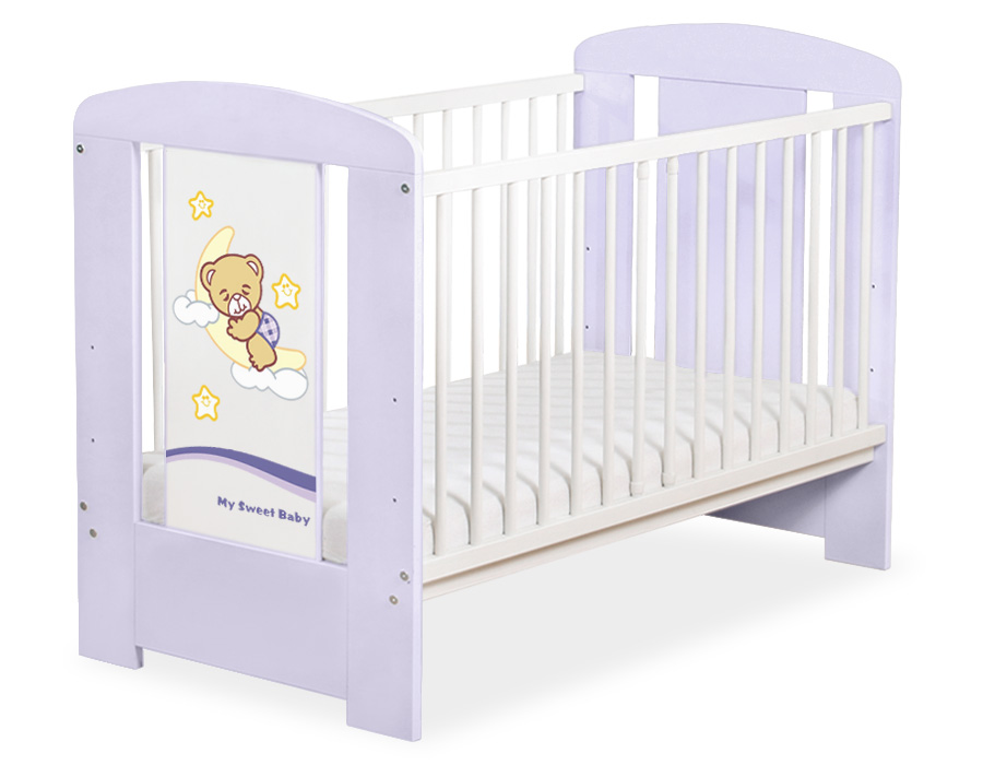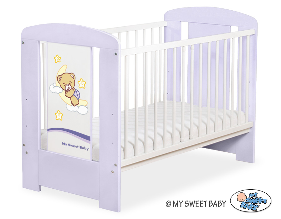 - stable and safe cot for your baby, it is also a beautifull room decoration, it looks beautifull with bedding set from Good Night collection. - front and back are made of melamine faced chipboard. On the front of cot the graphic that fits to the bedding Good Night.