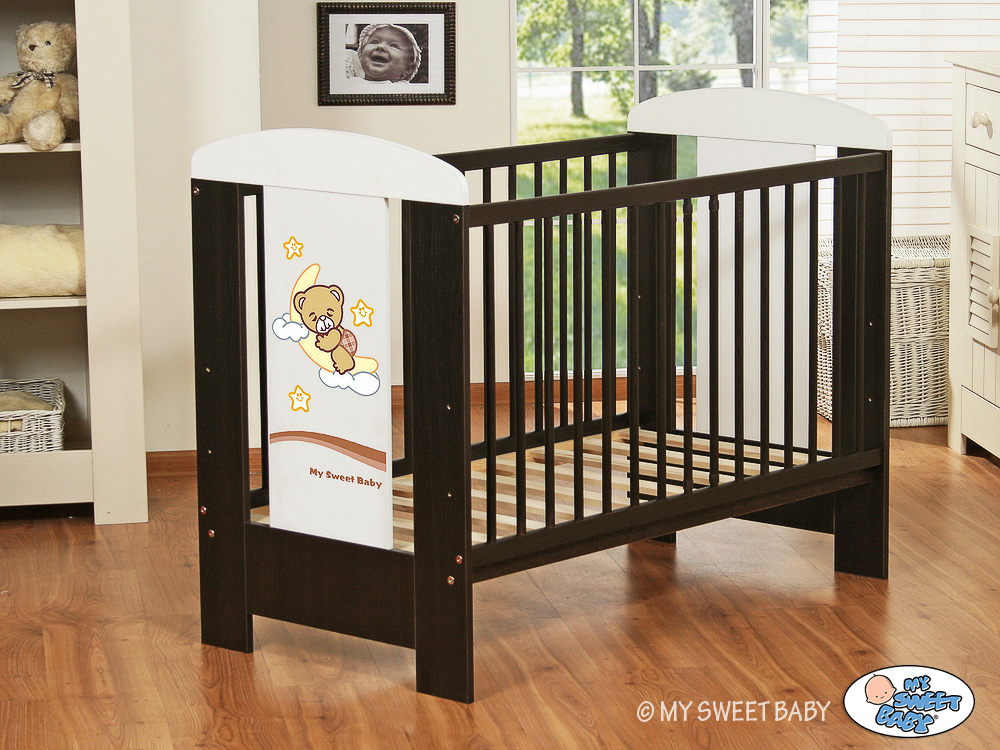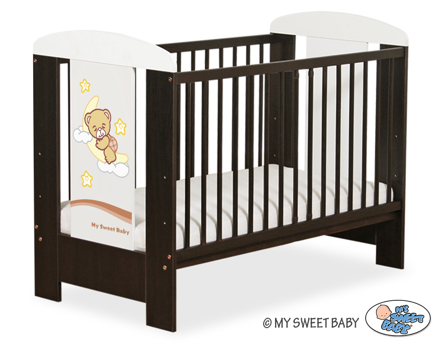 - stable and safe cot for your baby, it is also a beautifull room decoration, it looks beautifull with bedding set from Good Night collection. - front and back are made of melamine faced chipboard. On the front of cot the graphic that fits to the bedding Good Night.