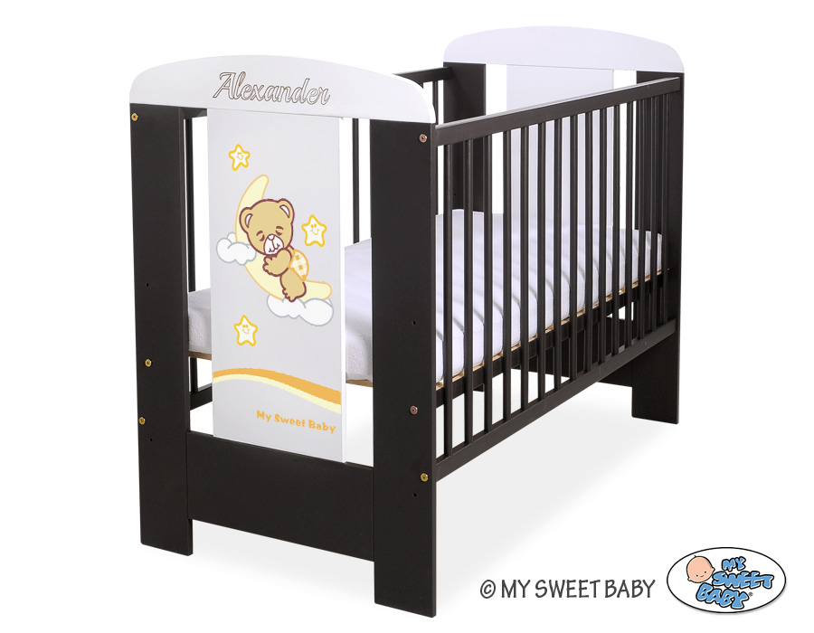 - stable and safe cot for your baby, it is also a beautifull room decoration, it looks beautifull with bedding set from Good Night collection. - front and back are made of melamine faced chipboard. On the front of cot the graphic that fits to the bedding Good Night.
