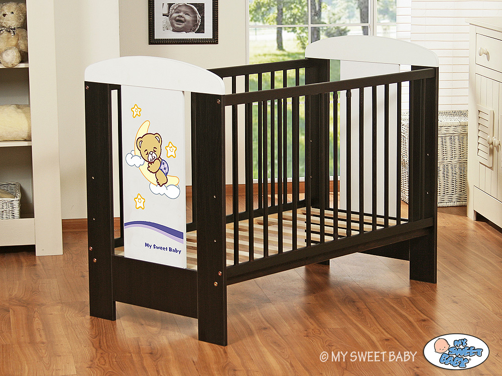 - stable and safe cot for your baby, it is also a beautifull room decoration, it looks beautifull with bedding set from Good Night collection. - front and back are made of melamine faced chipboard. On the front of cot the graphic that fits to the bedding Good Night.