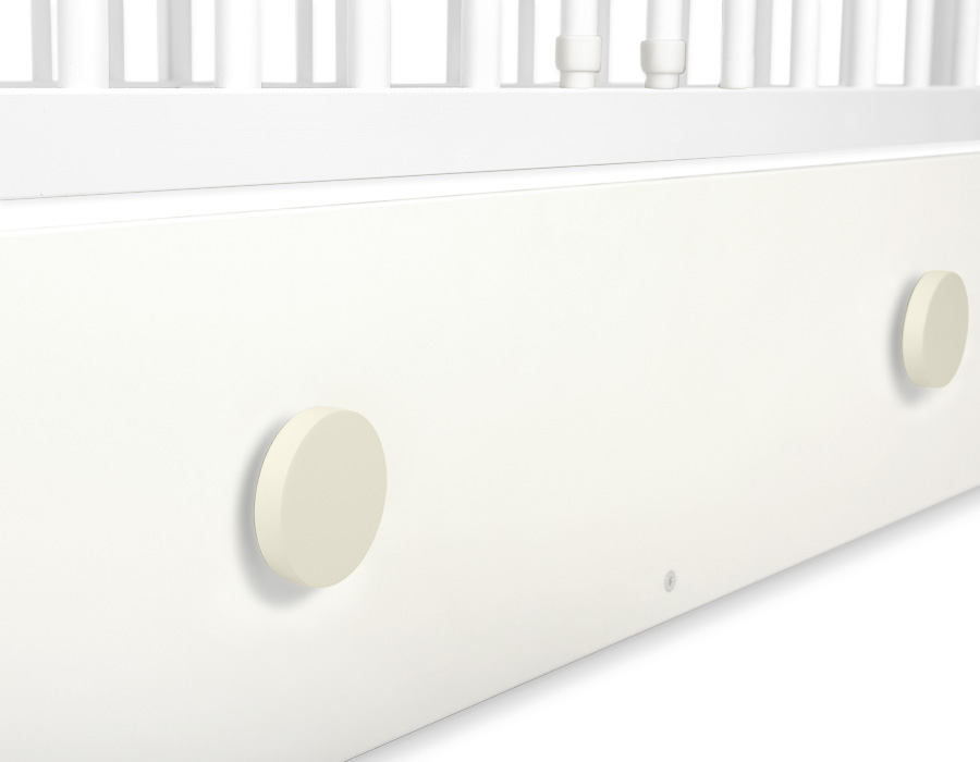 - front and back are made of melamine faced chipboard. On the front of cot the graphic that fits to the bedding Good Night.