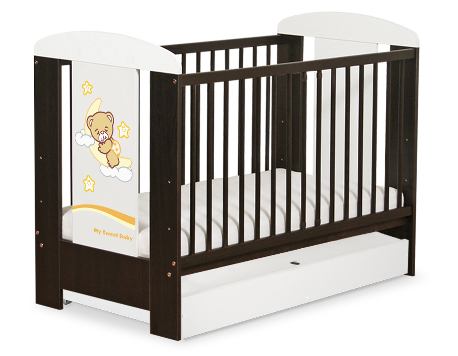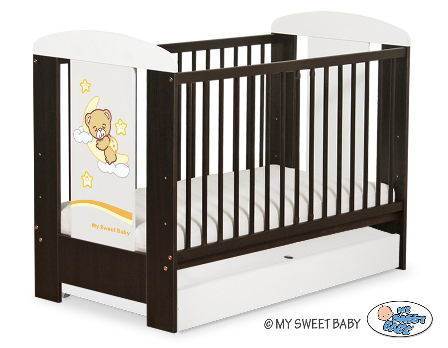 Baby cot bed 120x60cm Good Night with drawer STANDARD The most beautiful wooden baby cot with drawer STANDARD