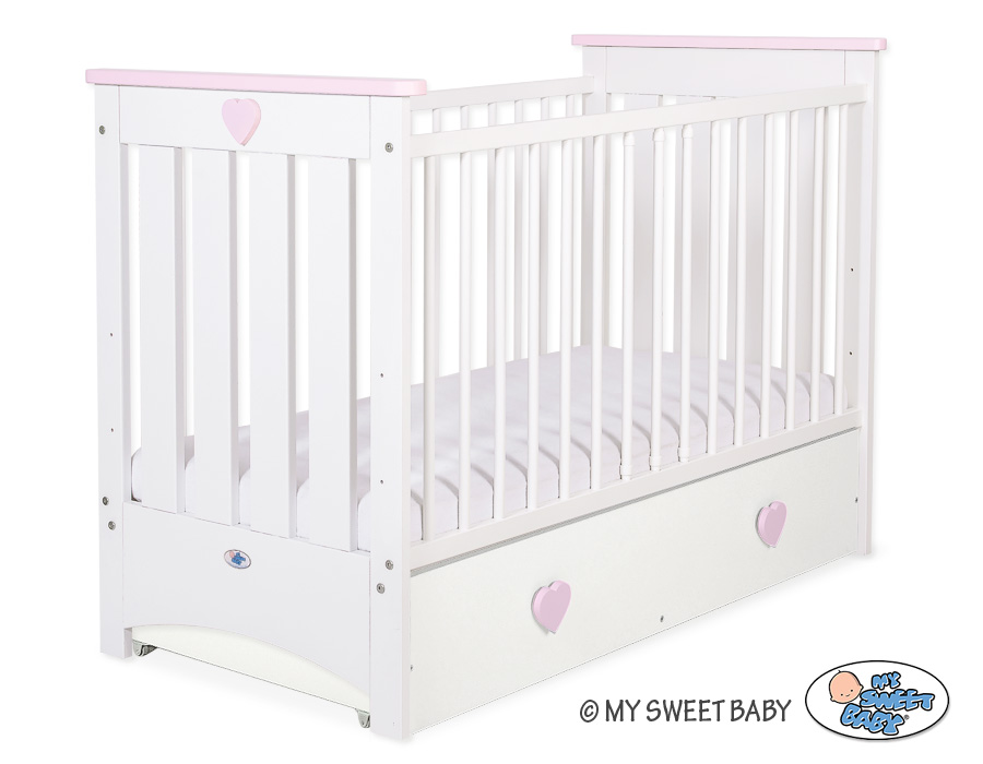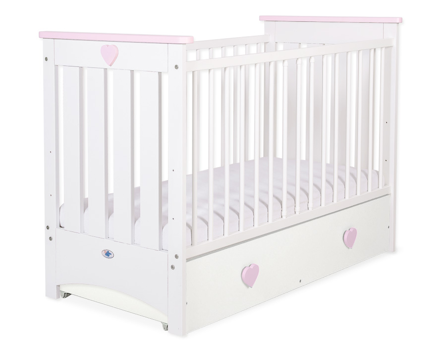 Baby Shop » Baby Cot Beds » Baby cot Lorenzo III white with drawer » Baby cot bed 120x60cm Lorenzo III white/pink with drawer MAXI