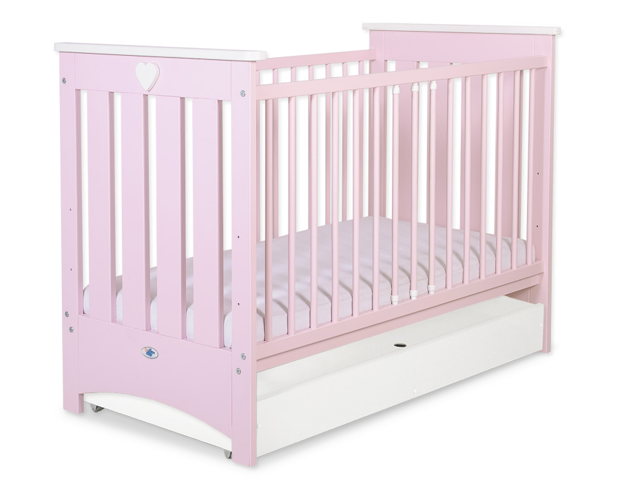 * Solid wood - made of solid and certificated (FSC COC) pine wood wood and fibreboard mdf. * Safe painting - painted complying with standards to EN 71-3. * Removable bars - a modern spring system to remove of three bars. The bars can not be removed by the child. * Three height levels of mattress frame (base) - the top level for easy care of baby, the middle level for babies for easy caring, scrolling and safety for baby. The lowest level when the child already starts walking. When you remove the removable bars- your child will have the possibility to get out of the cot. * Solid mattress frame- is made of thick solid wooden slats for durability and safety. * Massive fronts - made of fibreboard mdf, easy to assmble, solid and safe. * Easy installation - cot is extremely simple and easy to install. * Decorative slat on the front in the contrasting colour * Decorative convex heart in the contrasting colour * Stable and safe for your child * Dimensions: 120/60 / 92cm (length / width / height)