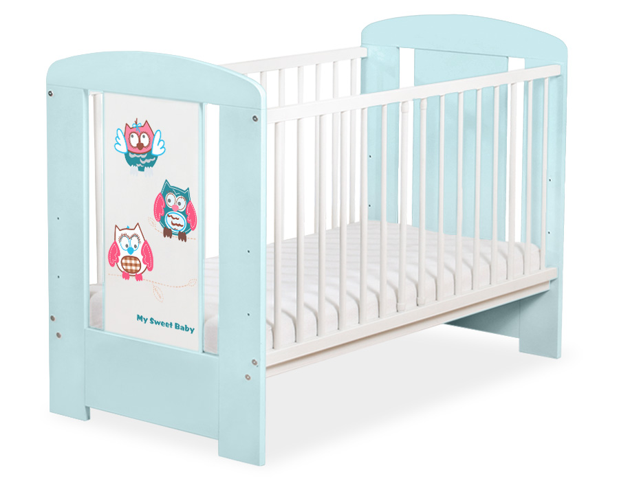 - front and back are made of melamine faced chipboard. On the front of cot the graphic that fits to the bedding Owls Bigi Zibi & Adele.