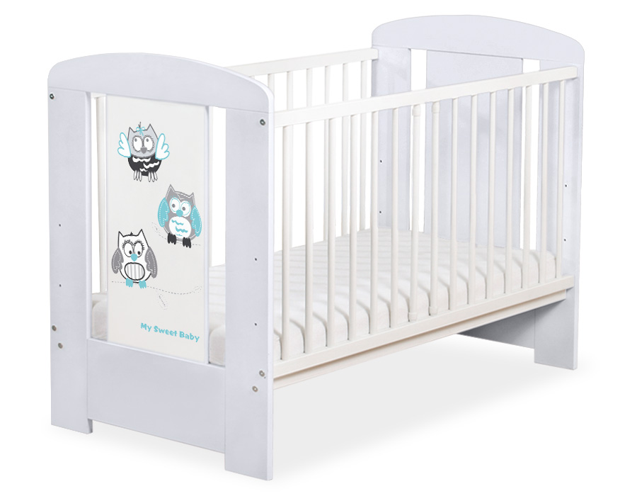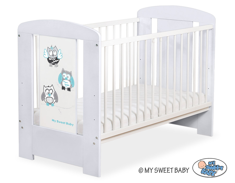 - front and back are made of melamine faced chipboard. On the front of cot the graphic that fits to the bedding Owls Bigi Zibi & Adele.