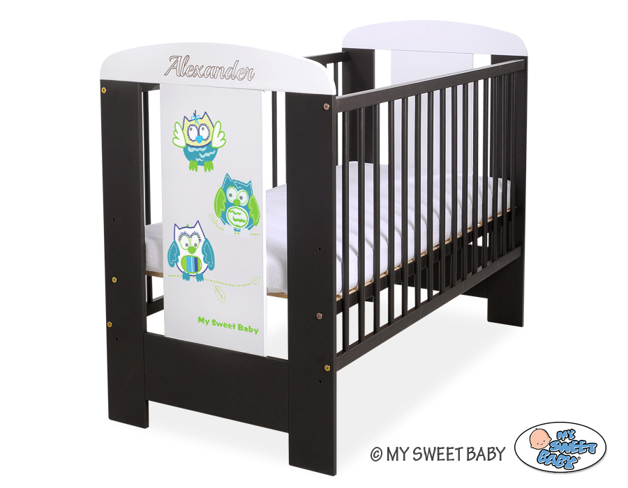 - front and back are made of melamine faced chipboard. On the front of cot the graphic that fits to the bedding Owls Bigi Zibi & Adele.