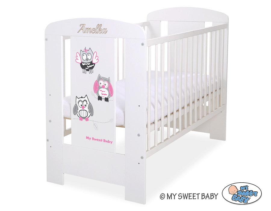 - front and back are made of melamine faced chipboard. On the front of cot the graphic that fits to the bedding Owls Bigi Zibi & Adele.