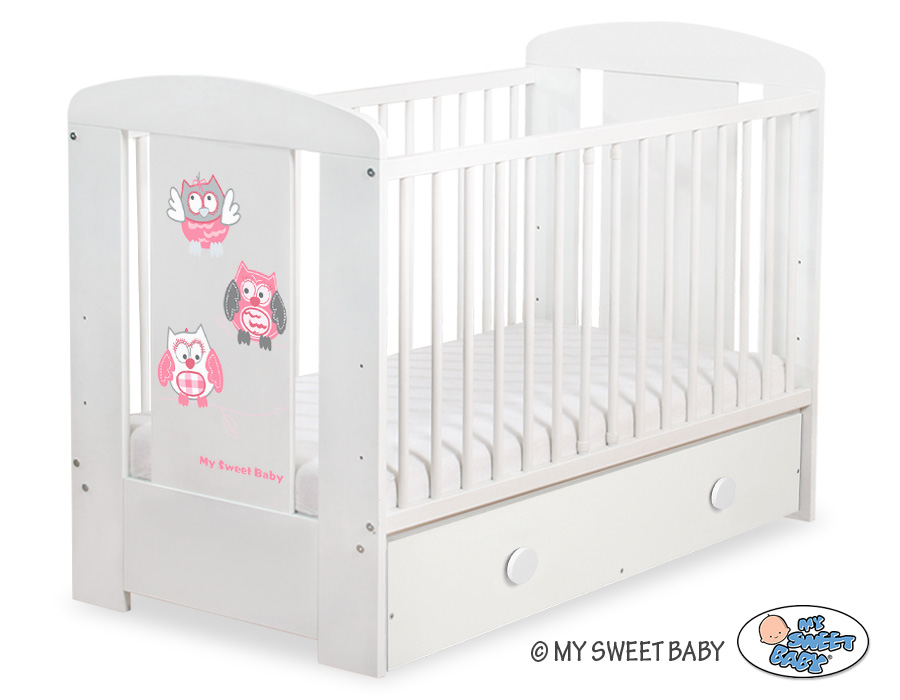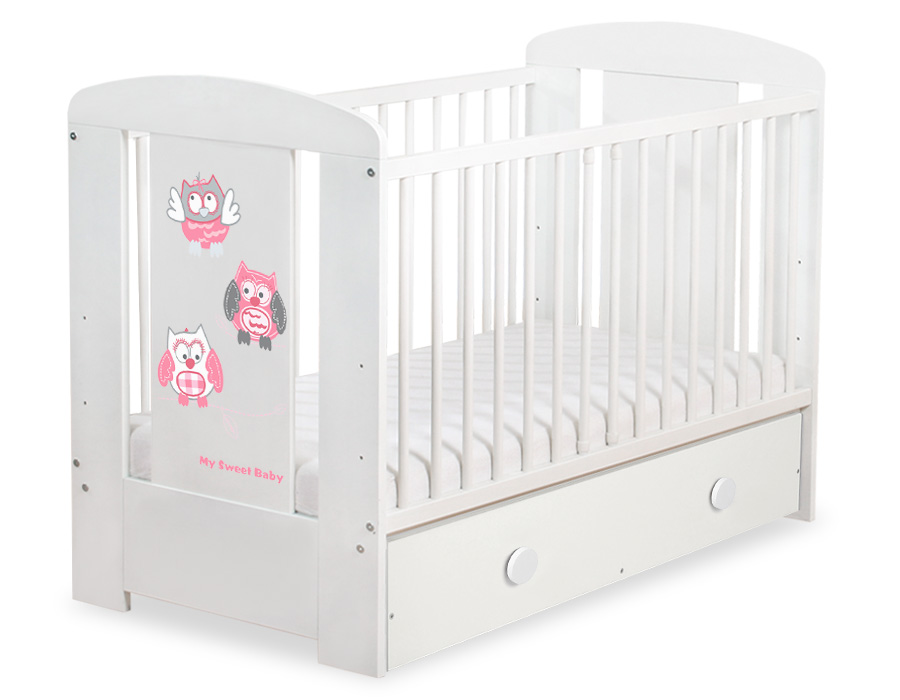 Baby cot bed 120x60cm Owls with drawer MAXI Wooden baby cot 120x60cm with drawer MAXI