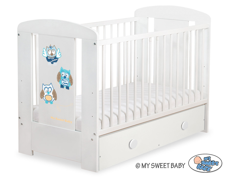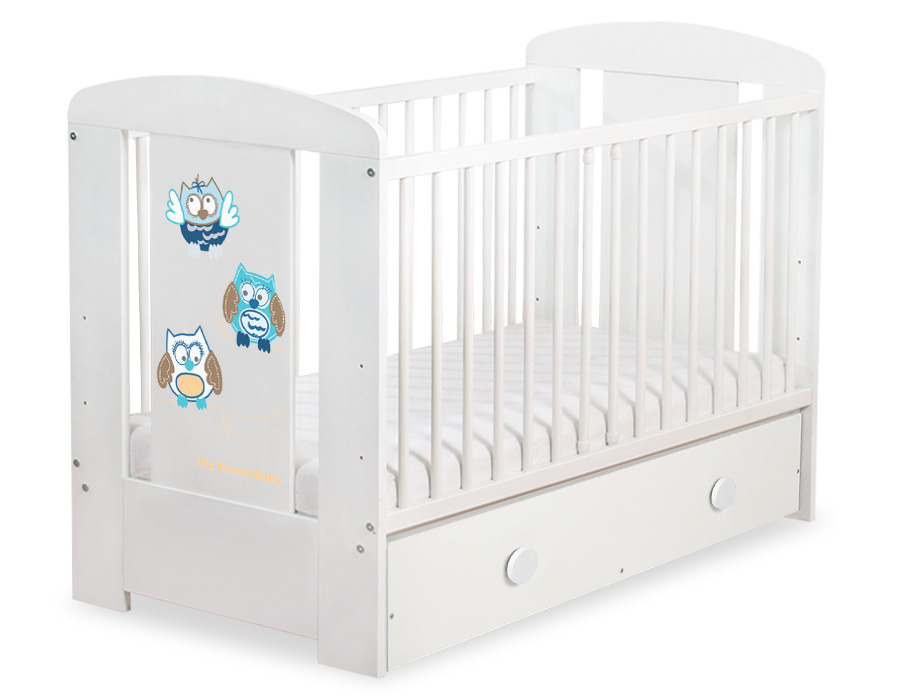 Baby cot bed 120x60cm Owls with drawer MAXI Wooden baby cot 120x60cm with drawer MAXI