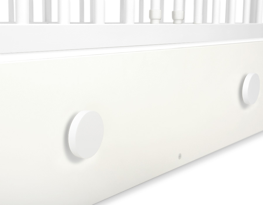 - front and back are made of melamine faced chipboard. On the front of cot the graphic that fits to the bedding Happy balloons.