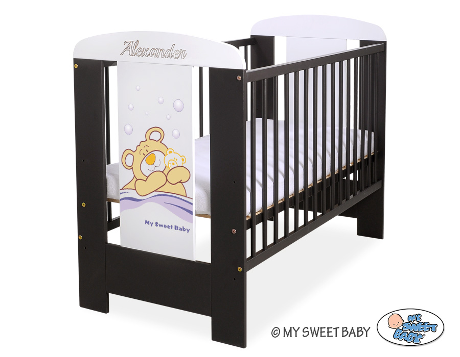 - stable and safe cot for your baby, it is also a beautifull room decoration, it looks beautifull with bedding set from Teddy Bear Barnaba collection. - front and back are made of melamine faced chipboard. On the front of cot the graphic that fits to the bedding Teddy Bear Barnaba.