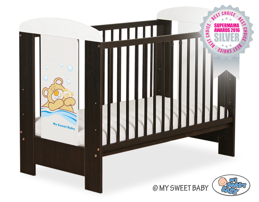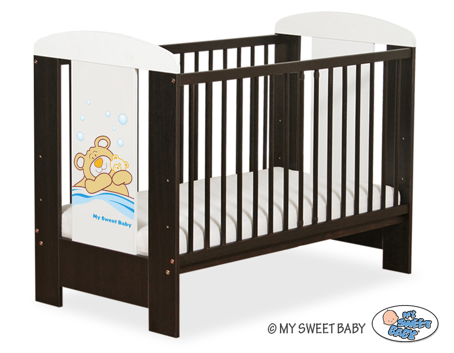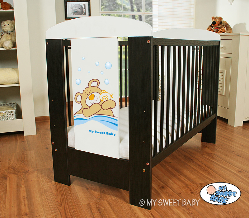 - stable and safe cot for your baby, it is also a beautifull room decoration, it looks beautifull with bedding set from Teddy Bear Barnaba collection. - front and back are made of melamine faced chipboard. On the front of cot the graphic that fits to the bedding Teddy Bear Barnaba.