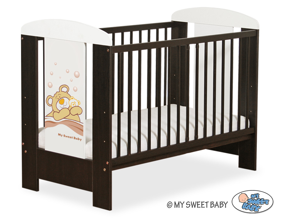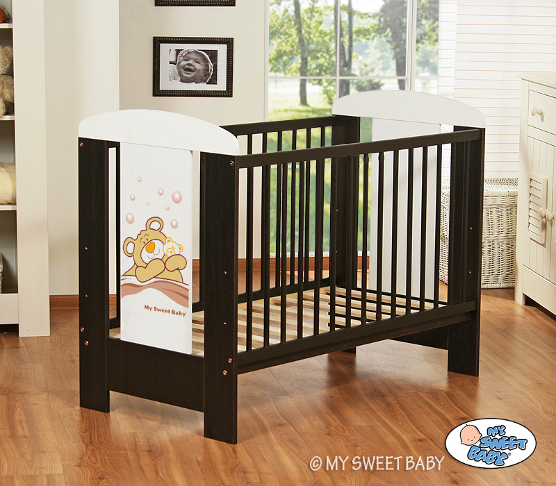 - stable and safe cot for your baby, it is also a beautifull room decoration, it looks beautifull with bedding set from Teddy Bear Barnaba collection. - front and back are made of melamine faced chipboard. On the front of cot the graphic that fits to the bedding Teddy Bear Barnaba.