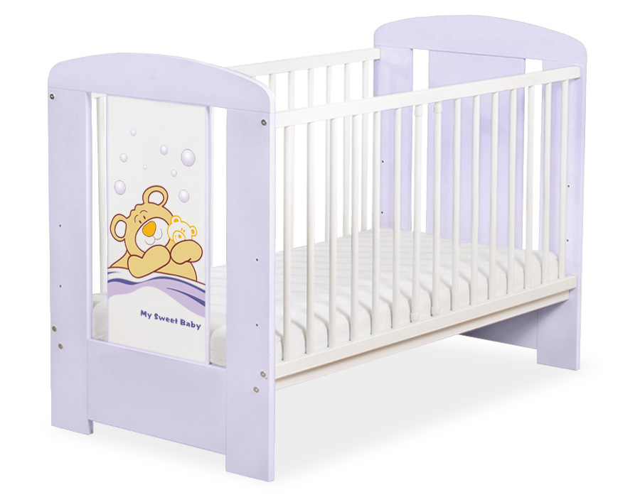 - stable and safe cot for your baby, it is also a beautifull room decoration, it looks beautifull with bedding set from Teddy Bear Barnaba collection. - front and back are made of melamine faced chipboard. On the front of cot the graphic that fits to the bedding Teddy Bear Barnaba.