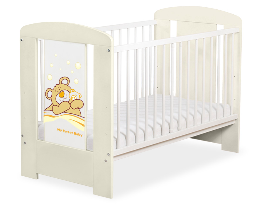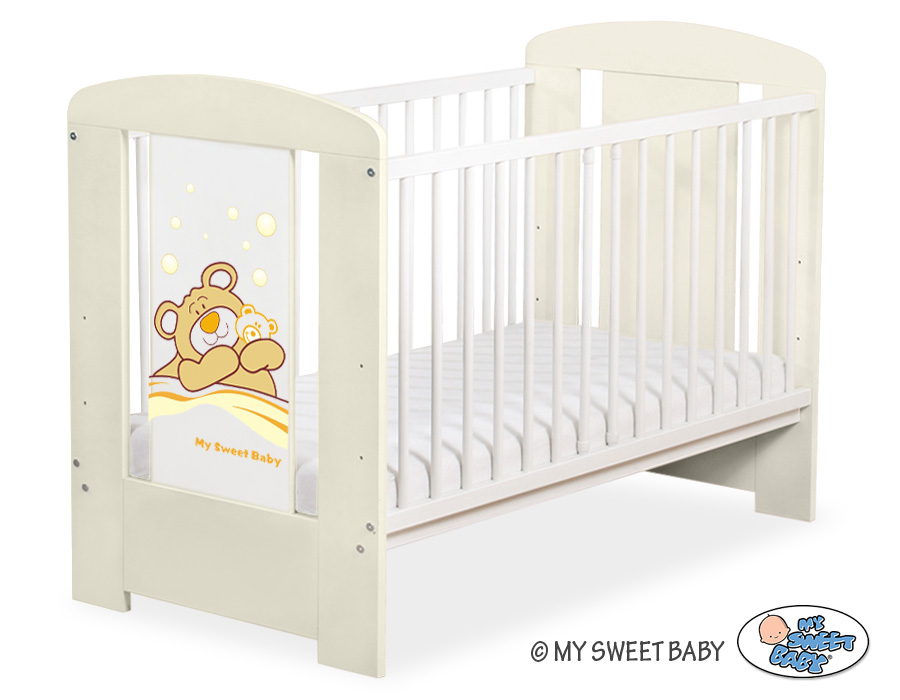 - stable and safe cot for your baby, it is also a beautifull room decoration, it looks beautifull with bedding set from Teddy Bear Barnaba collection. - front and back are made of melamine faced chipboard. On the front of cot the graphic that fits to the bedding Teddy Bear Barnaba.