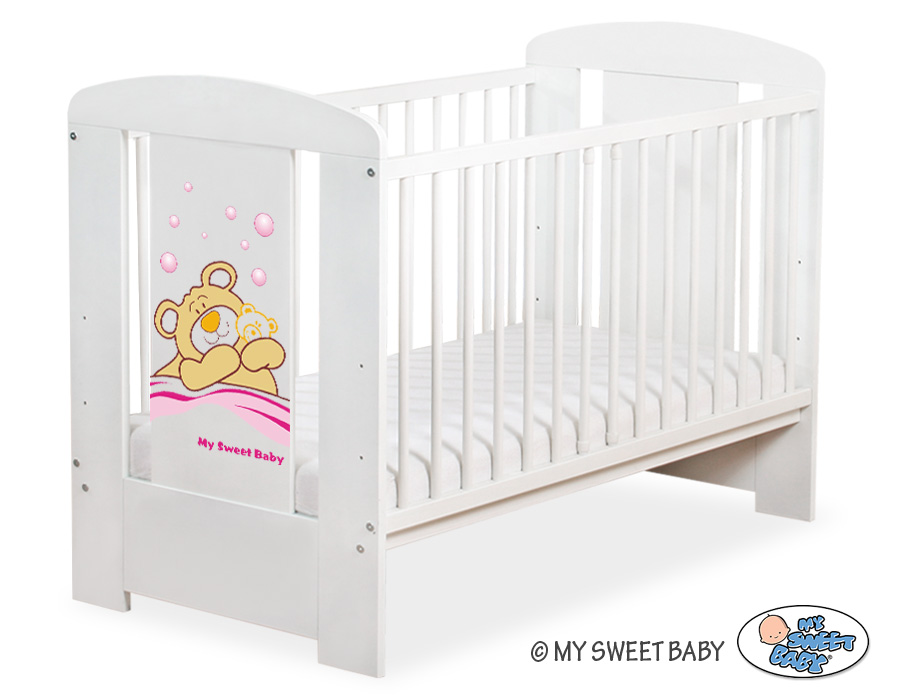 Baby cot bed 120x60cm Tedy Bear Barnaba White Model: 800 The most beautiful wooden baby cot. Removable rungs, three levels of height of mattress frame.