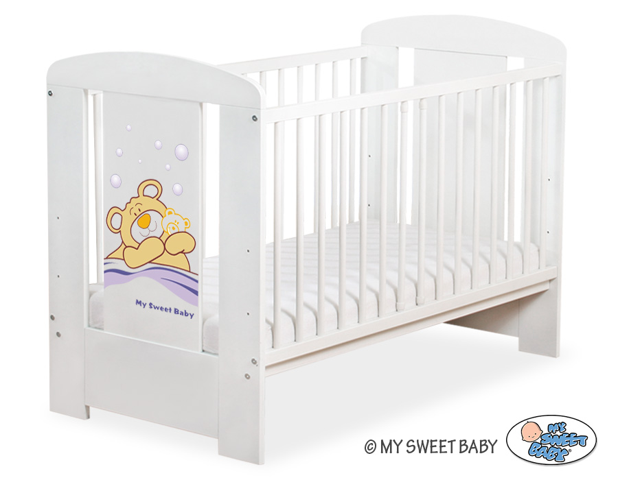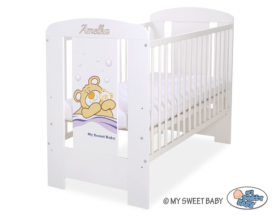 - stable and safe cot for your baby, it is also a beautifull room decoration, it looks beautifull with bedding set from Teddy Bear Barnaba collection. - front and back are made of melamine faced chipboard. On the front of cot the graphic that fits to the bedding Teddy Bear Barnaba.