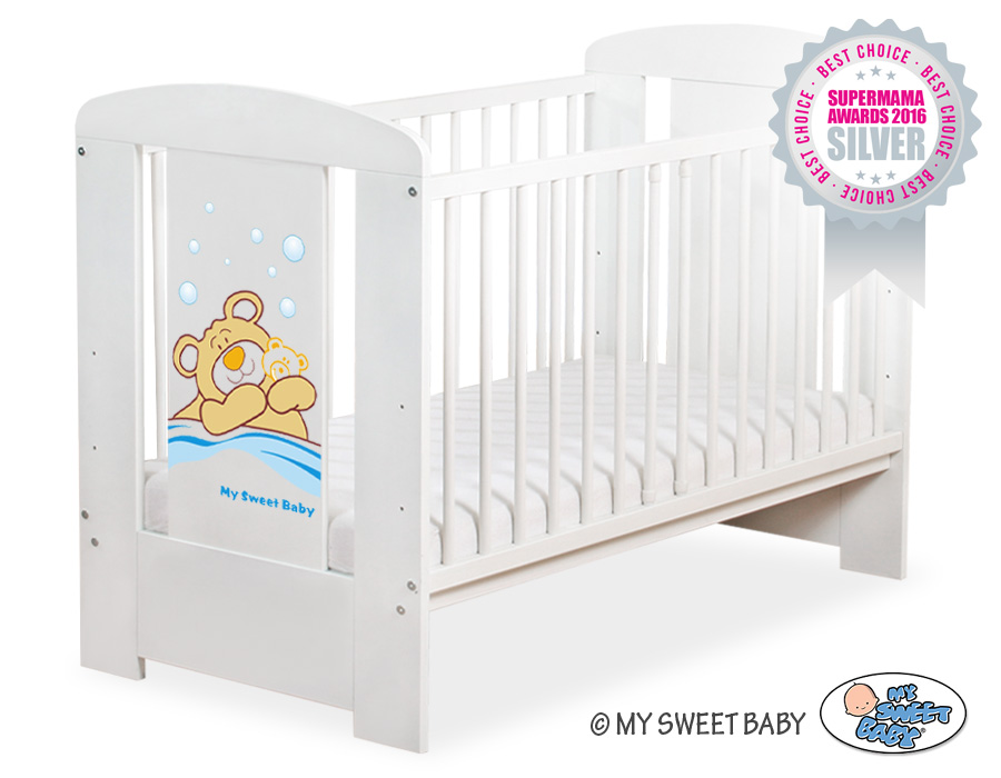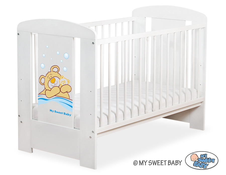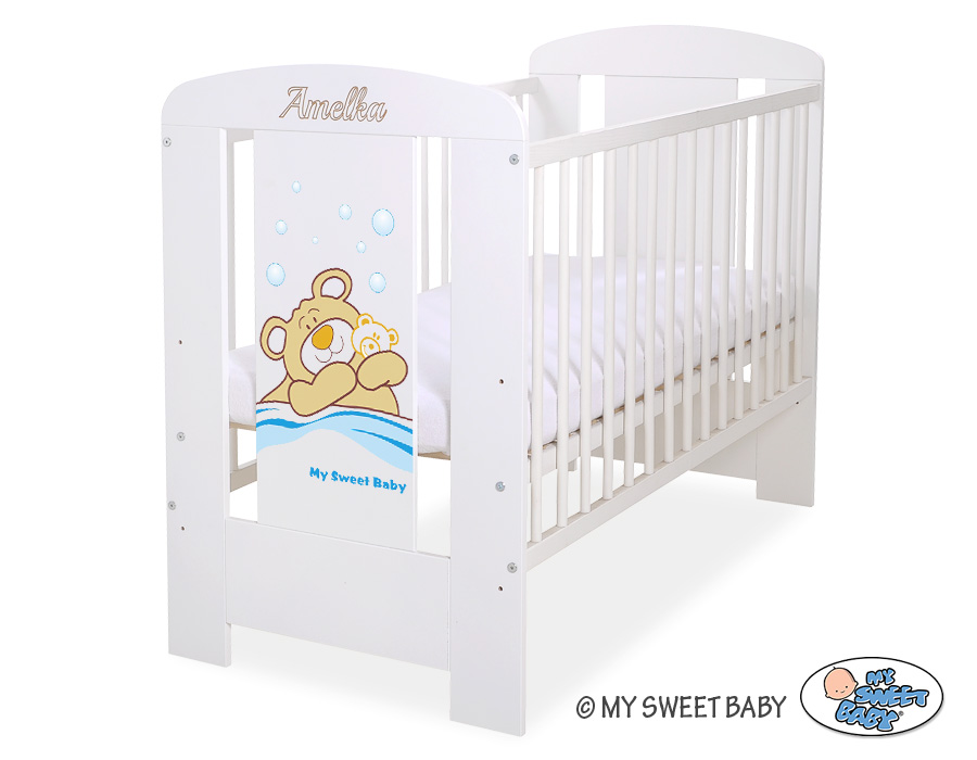 - stable and safe cot for your baby, it is also a beautifull room decoration, it looks beautifull with bedding set from Teddy Bear Barnaba collection. - front and back are made of melamine faced chipboard. On the front of cot the graphic that fits to the bedding Teddy Bear Barnaba.
